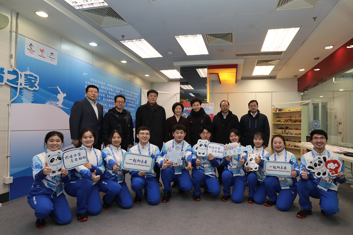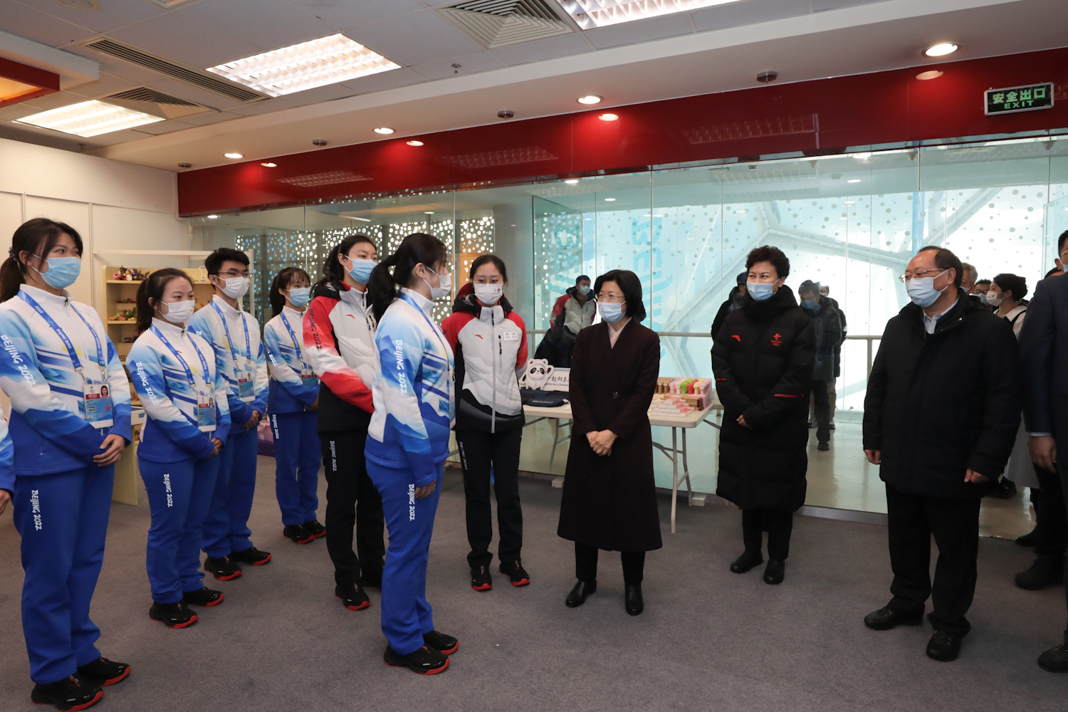 2022新年伊始,北京冬奥会筹备进入了“压线冲刺”阶段。1月3日,距北京2022冬奥会开幕式倒计时30天之际,市委常委、组织部部长、人力资源与志愿者工作组组长孙梅君来到国家游泳中心亲切看望志愿者骨干。北京市委组织部主持日常工作副部长王建中,北京冬奥组委志愿者部部长滕盛萍 ,副部长张秀峰、张丽娜,团市委书记李军会、副书记李健,北京工商大学党委书记黄先开、副书记李中奇,北京大学党委副书记、副校长、医学部党委书记陈宝剑,国家游泳中心场馆运行团队主任张杰,学校冬奥保障专班成员单位负责人一同参加慰问。