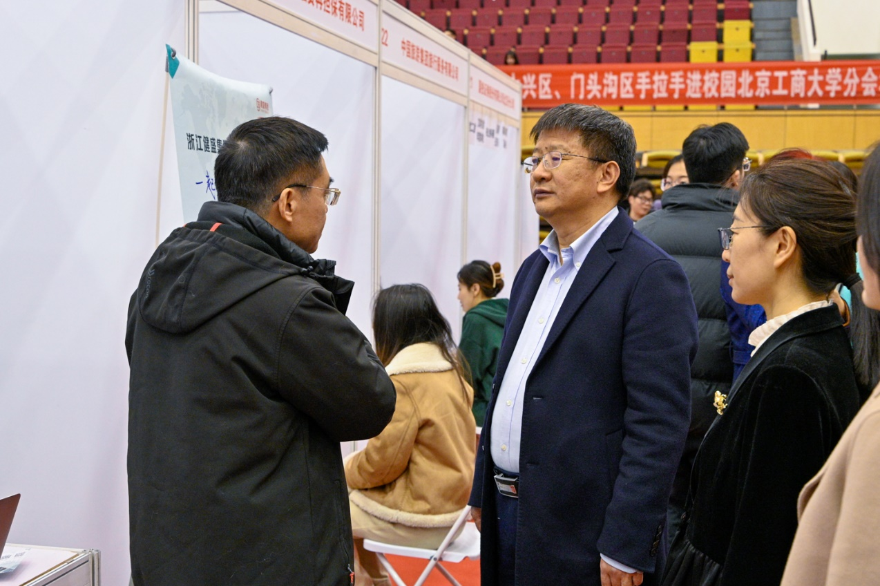 此次双选会由学校招生就业处与北京高校大学生就业创业指导中心联合主办,东城区、丰台区、大兴区、门头沟区人社局作为协作单位推荐区内优秀用人单位参会。房山区人社局局长隗合庆莅临现场指导,表示将继续给予学校就业工作大力支持,共同助力高校毕业生高质量就业。