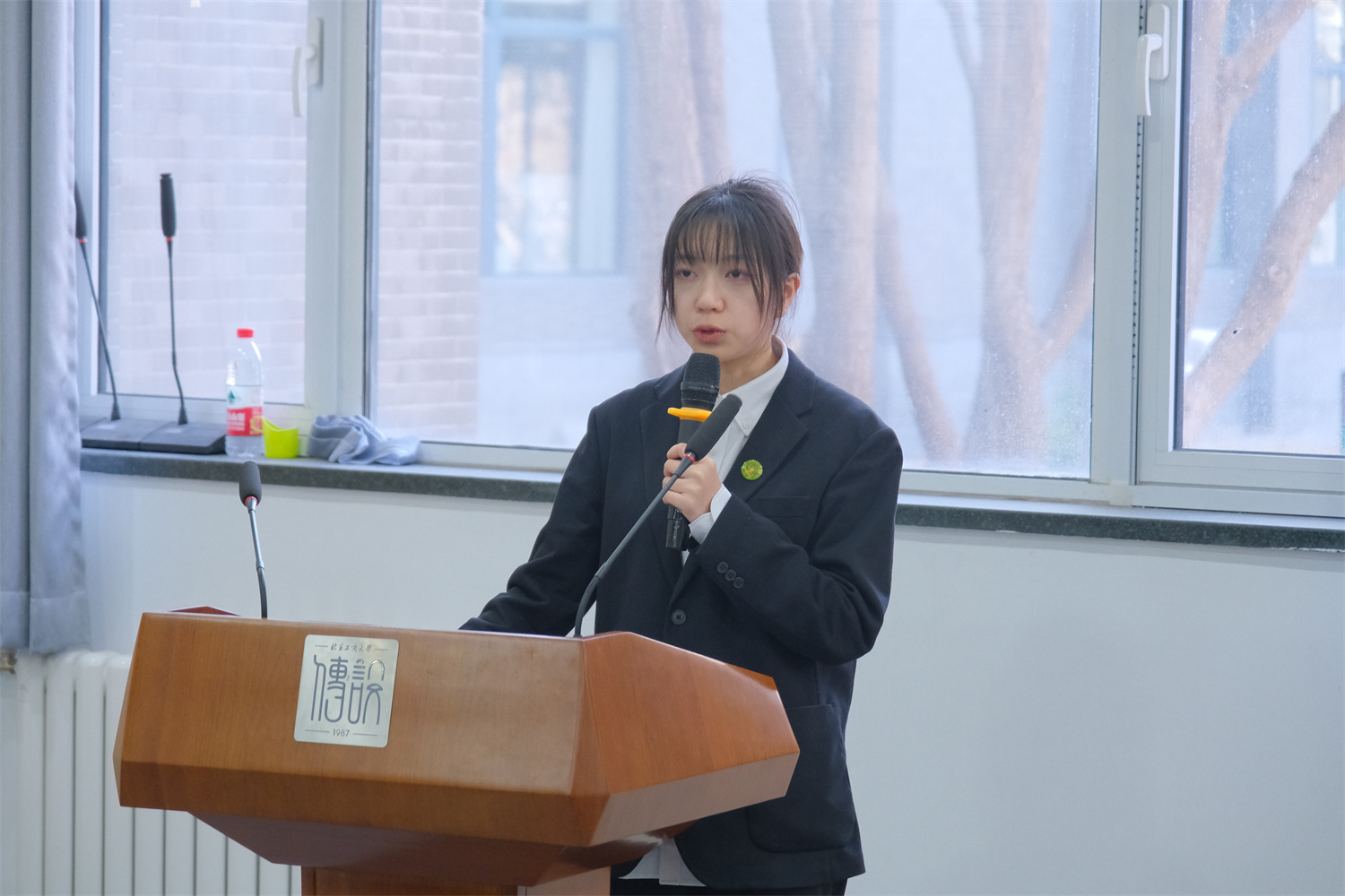 数学与统计学院李建军作为新聘⼤使代表发言,他结合自身成⻓经历讲述了应聘资助宣传⼤使的决心与动力,并承诺一定会时刻铭记自己肩负的责任,胸怀感恩之⼼,践行初心使命。上届优秀大使代表——商学院郑莉平进⾏模拟宣讲,她真挚感人,催人奋进的演讲为各位新聘⼤使提供了良好示范。