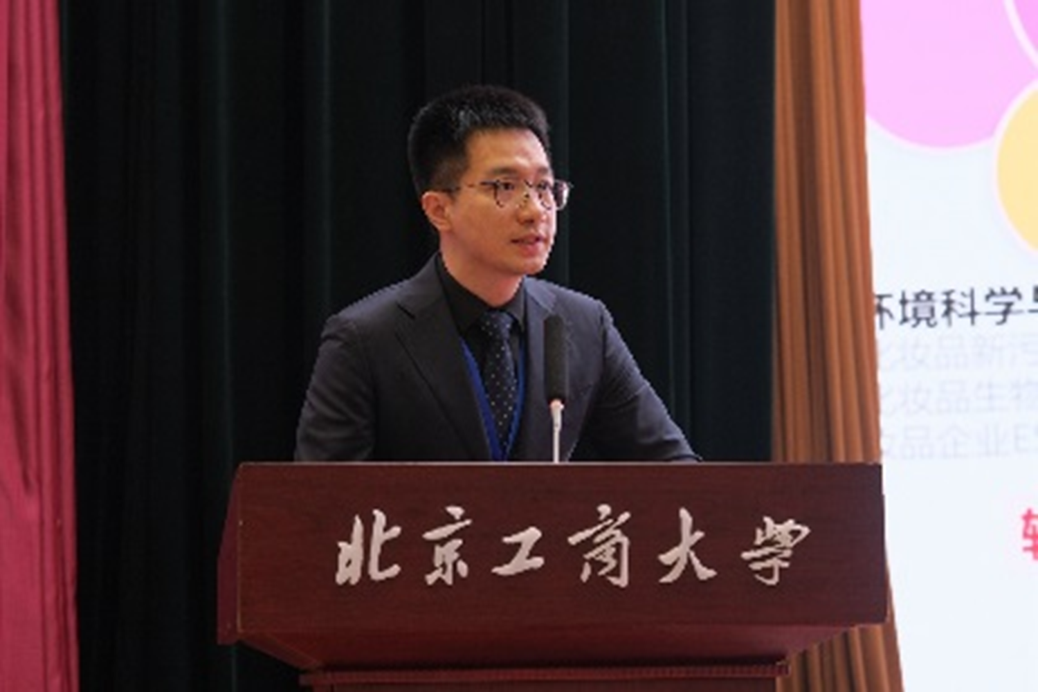 会议的第二阶段是化妆品科技前沿交流会,由学院易帆副院长主持。他介绍了轻工科学与工程学院发展的整体情况,随后化妆品系系主任刘蕾、化学系系主任袁焕祥、生物工程系系主任韩天以及应用化学系系主任王策依次介绍了各专业现状、科研团队研究现状和科研成果。国际化妆品学院副院长孟宏对国际化妆品学院、化妆品监管科学研究基地进行了详细的介绍。她表示数字化化妆品监管与消费是基地的重要研究方向,国际化妆品学院在成果转化、项目申报、数字教育、专业培训等方面将发挥积极作用。最后,易帆表示我校化妆品专业是多学科交叉、多学科协同的创新开发全生命周期研究,提出了“数智牵引、工商融合;群轻叠翠,共谱华妆”的化妆品专业创新目标。