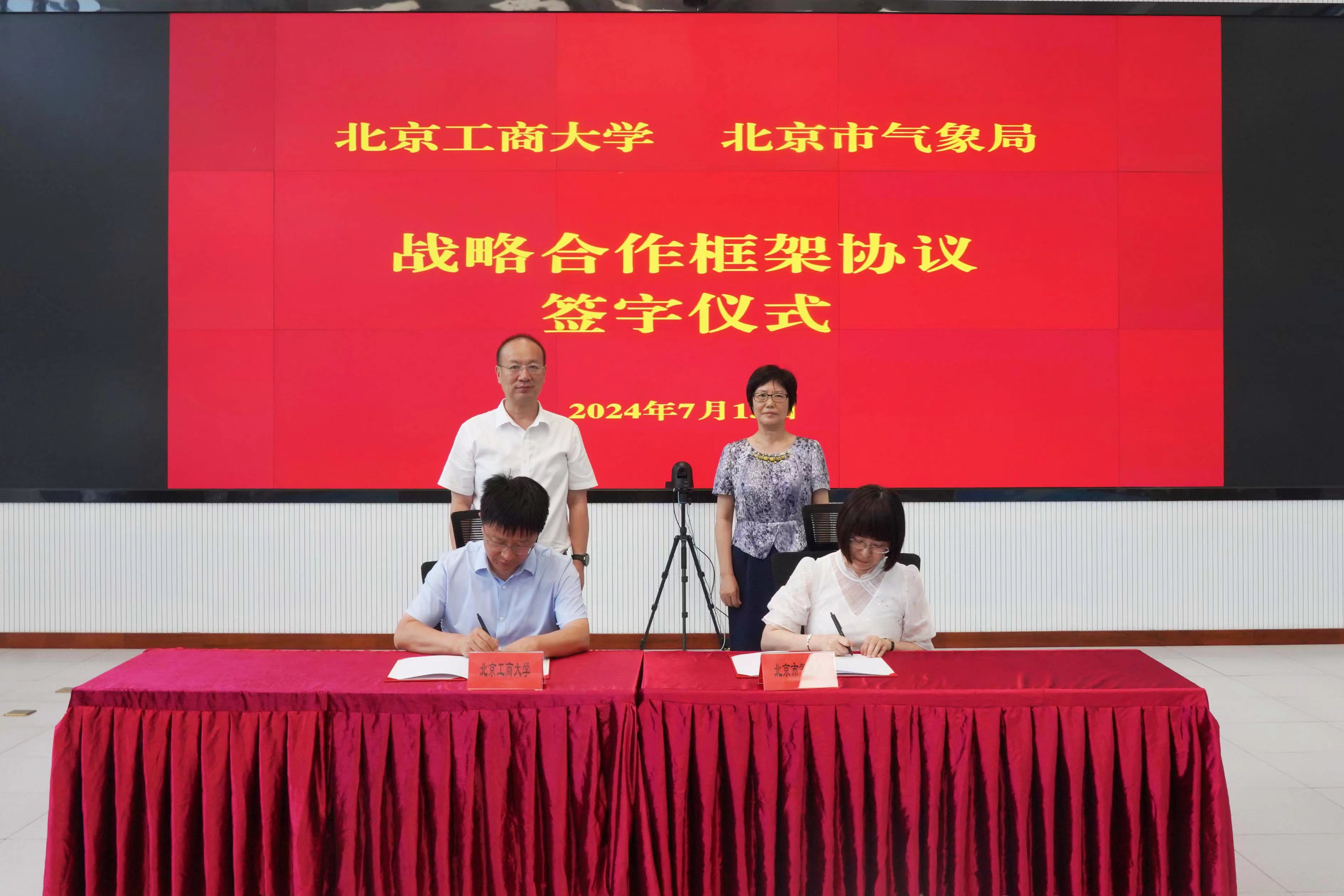 7月15日,党委副书记、校长郭建华一行前往北京市气象局,签署战略合作框架协议。北京市气象局党组书记、局长郝丽萍出席仪式。仪式由北京市气象局一级巡视员王月宾主持。