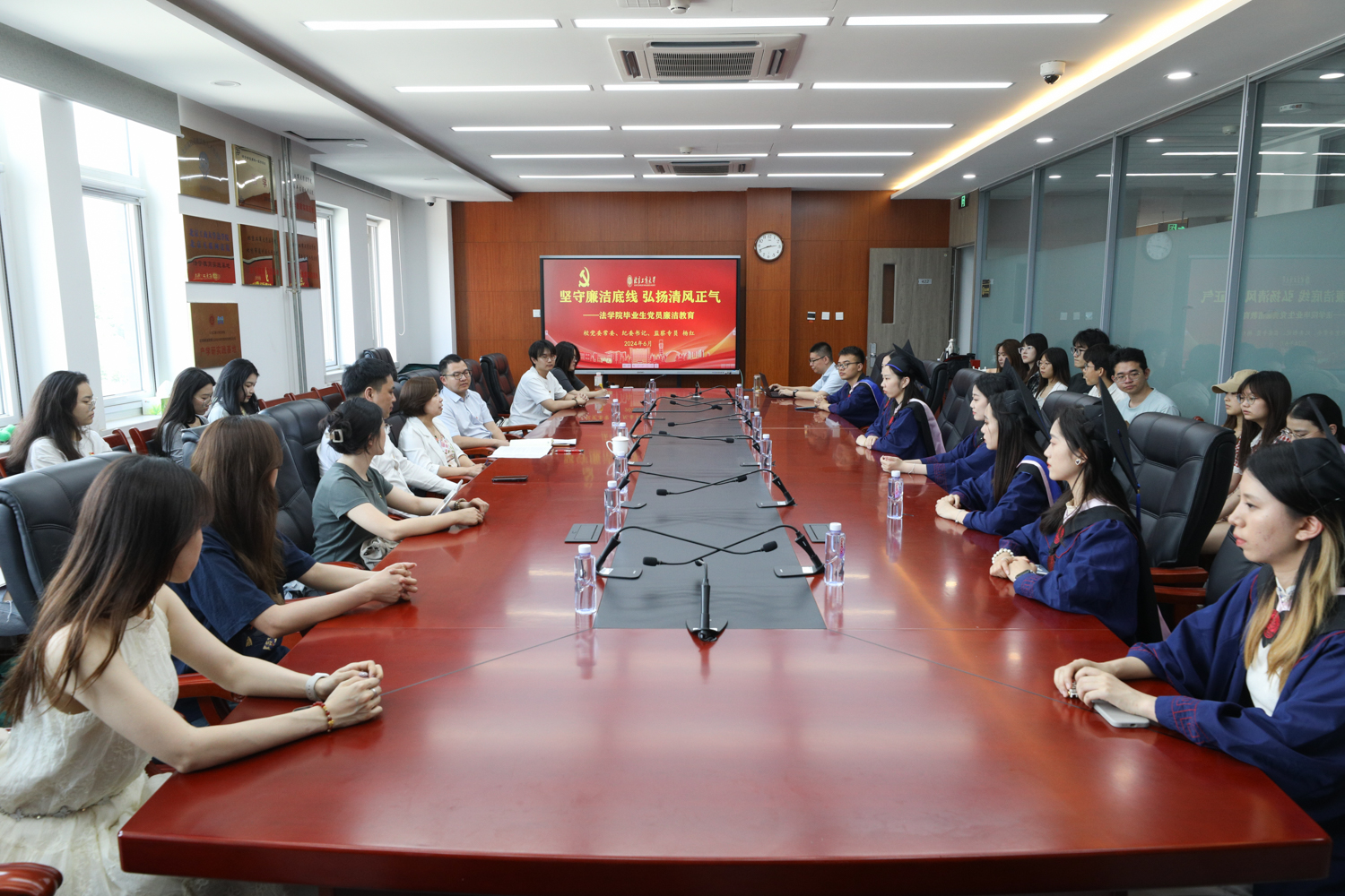 为做到学纪、知纪、明纪、守纪,进一步强化学生党员纪律意识、加强自我约束、增强政治定力、纪律定力、道德定力、抵腐定力,6月27日,学校党委常委、纪委书记、监察专员杨红来到法学院,以《坚守廉洁底线 弘扬清风正气》为主题讲授专题思政课。法学院毕业生党员代表、在读学生党员、发展对象、积极分子共40余人参加学习。活动由法学院党委书记胥阳主持。