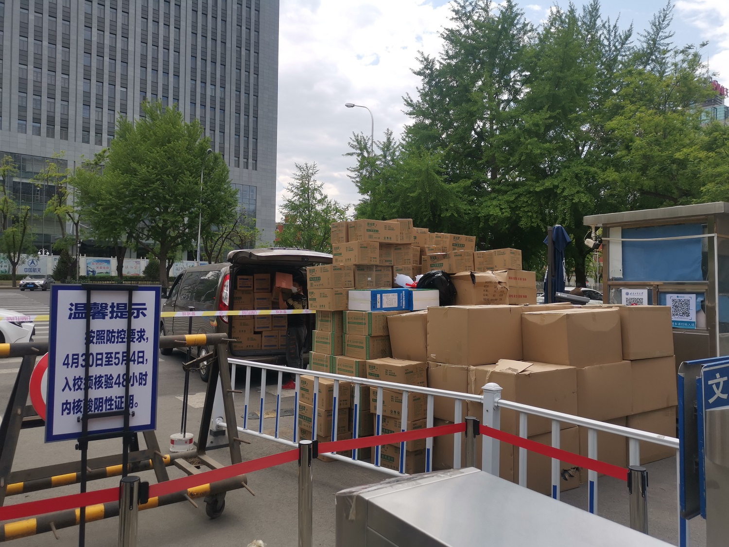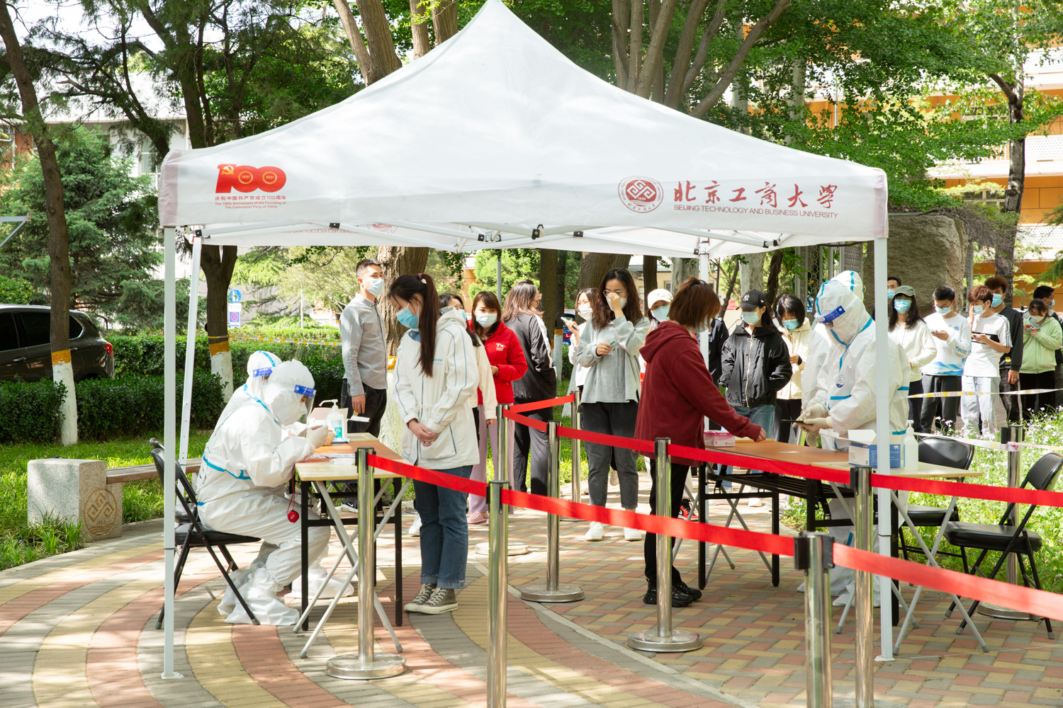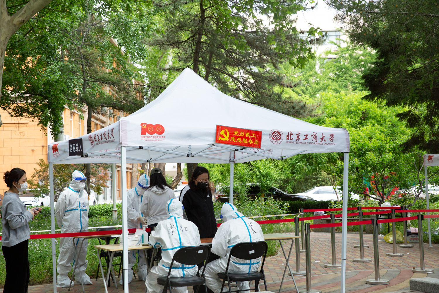 5月1日,校领导在阜成路校区检查临时管控区疫情防控工作。校领导一行检查了校区校门管控、食堂就餐、党员教工核酸检测采样志愿者工作以及学校各项物资储备等情况,看望慰问了校区在岗教职员工。