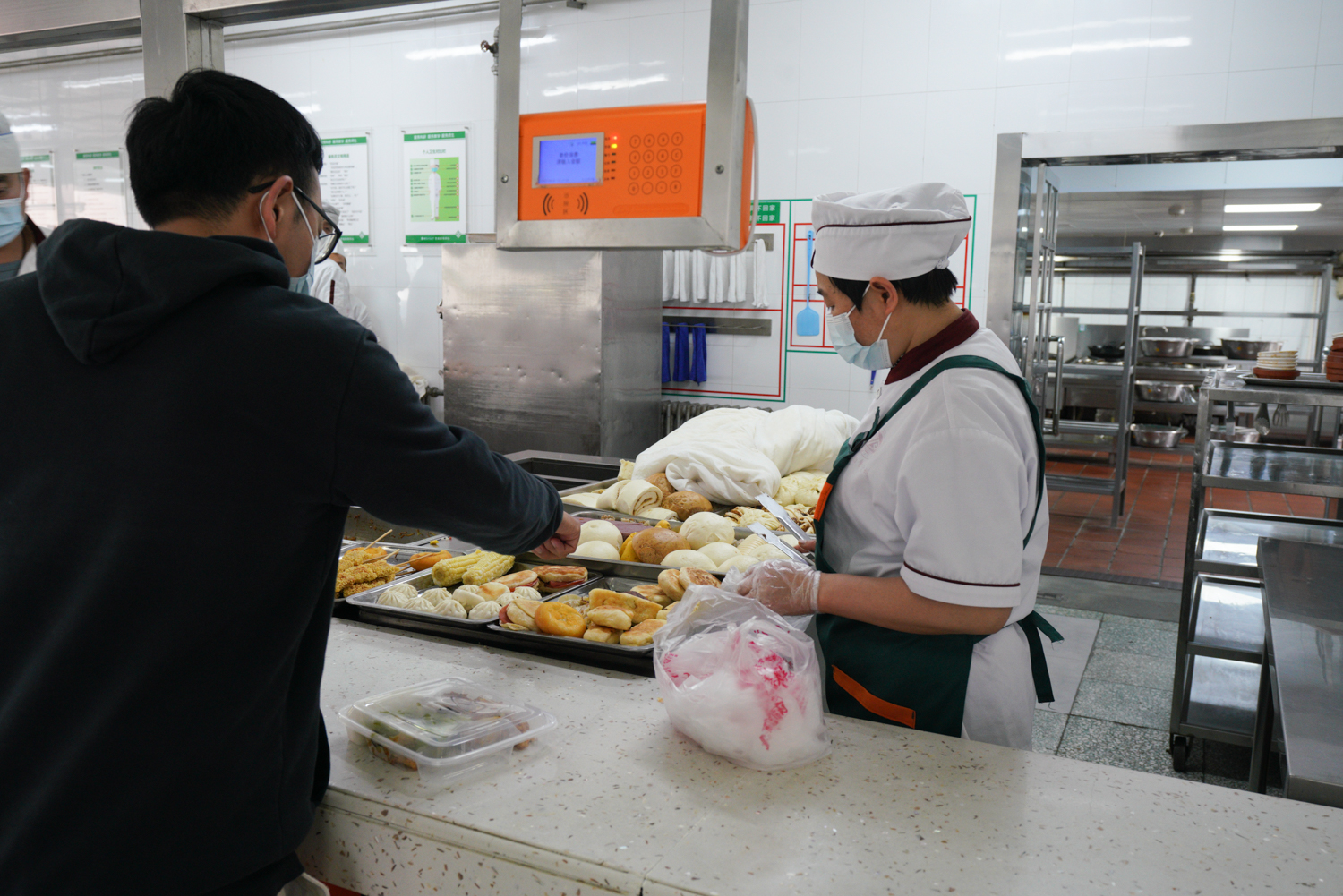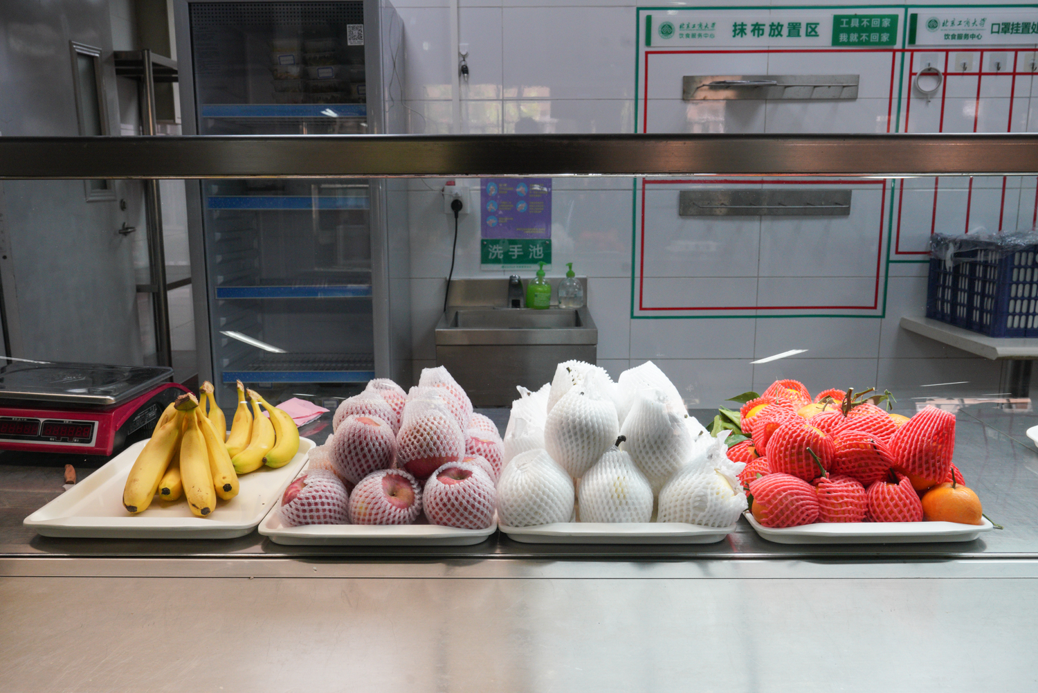 目前,学校食堂取消了堂食,改为提供免费餐盒,由就餐师生打包回住所用餐。取餐期间,师生保持排队间隔,秩序井然。为了让在校师生“吃得好、吃得饱、吃的健康”,学校食堂积极调整菜谱,丰富菜品种类,同时开设水果售卖窗口,备货充足、种类齐全、质量过硬、价格稳定。阜成路校区超市各类饮料、食品、日用品等货品配备齐全。为做好防疫物资保障,学校采取防疫物资绿色通道进行采购,按照特殊情况下防疫物资的储备量,将防疫物资分别储备在阜成路、良乡两校区的5个库房,最大限度的保障两校区的防疫供应。校领导在检查食堂保障、两校区超市备货及防疫物资储备情况时指出,目前学校各项物资储备齐全,各单位要持续关注师生用餐、购物需求,全力做好保障。