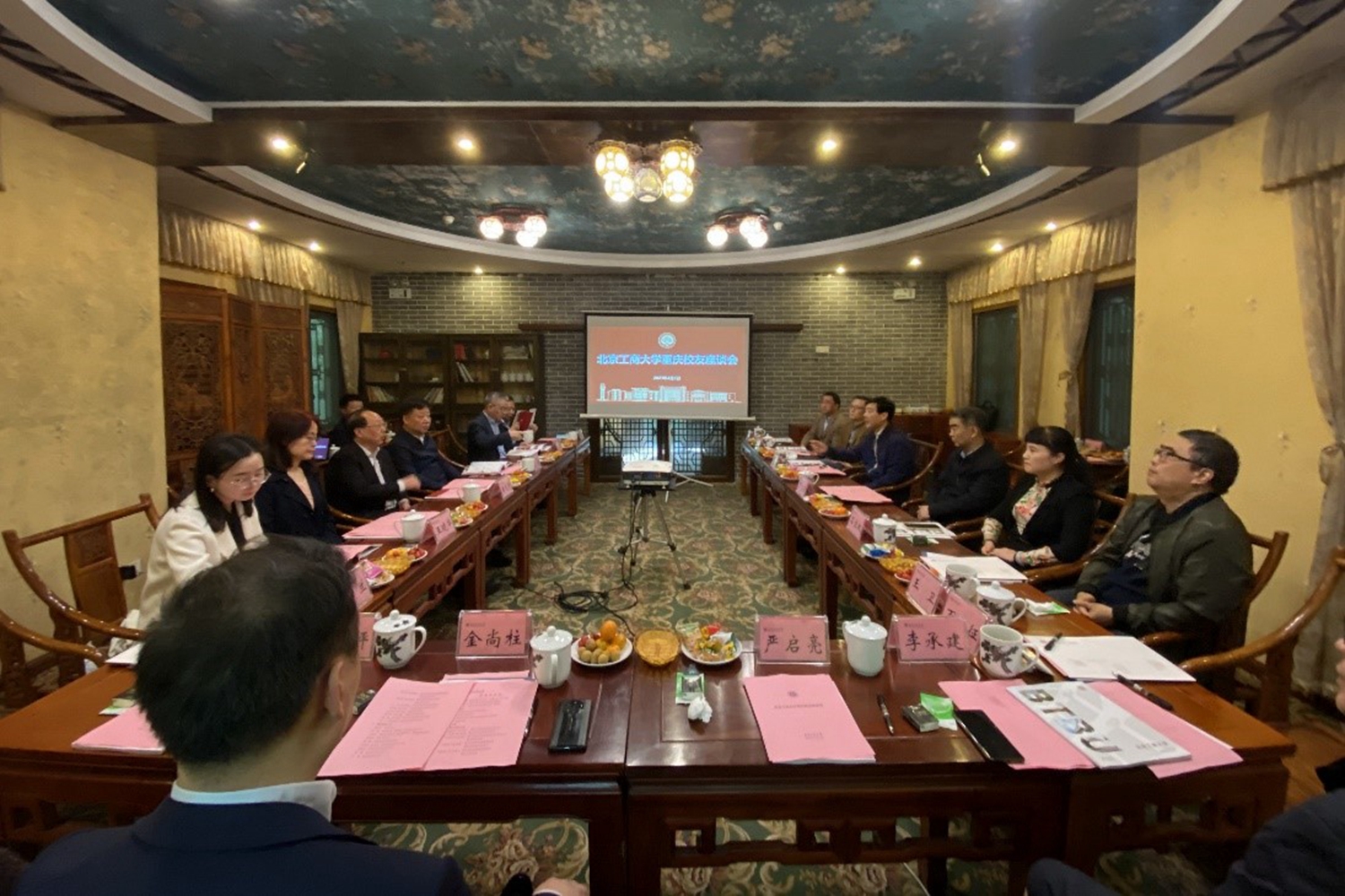 会议伊始,与会人员共同观看了学校宣传片,一起回顾了学校73年发展历程,重温办学成果,展望美好未来。黄先开代表学校对校友们长期关心和支持学校建设发展表示感谢,并详细介绍了学校建校历史、红色基因以及近年来在学科建设、人才培养、教学科研等方面取得的显著成绩。他谈到,北京工商大学作为北京市重点建设的高水平研究型大学,坚持以服务新时代首都发展为统领,进一步明确发展定位,完善两校区规划,全面深化综合改革,全力创建“双一流”学科,努力推进“食品学科进入全球前列、商科数字化转型”取得明显进展,学校事业发展掀开新的篇章。他强调,学校高度重视校友工作,将进一步加强各省市、各地区、各行业校友联谊会建设,畅通校友与母校的沟通渠道,加强交流合作,促进共同发展,开创校友工作新局面。他希望各位校友积极为母校发展出谋划策,为母校早日实现发展目标贡献智慧和力量,齐心协力,共同开创北京工商大学的美好未来。