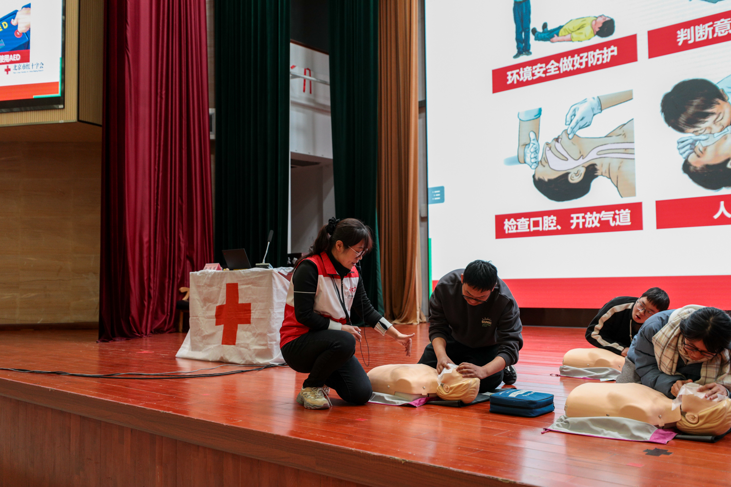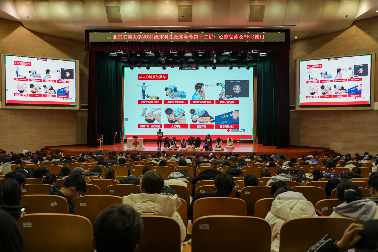 11月26日,北京工商大学良乡主校区开展2024致知学堂系列讲座第十二讲:心肺复苏及AED使用。原解放军三甲医院护士长、现北京市红十字会应急救护培训讲师、心理咨询师、健康管理师张海英开展“守护校园安全,红十字‘救’在身边”为题的讲座,带领同学们深入学习急救的各种方法,了解心肺复苏在现实生活中的运用,深化同学们对“红十字会的认识。
