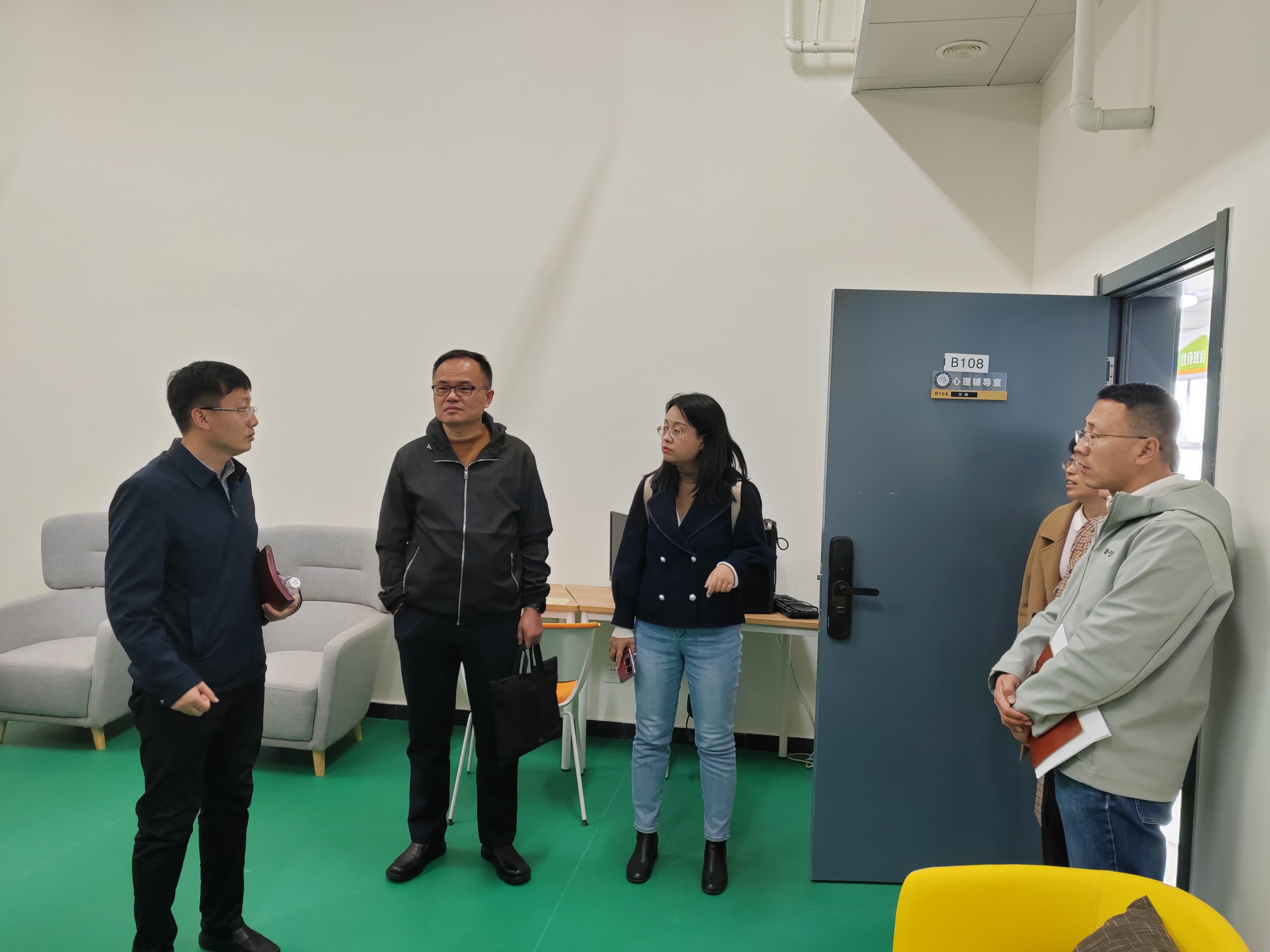 随后,双方围绕思想政治教育、AI辅导员建设、学生资助、心理健康和后勤服务保障等方面进行了交流与讨论。会后,实地参观了我校致知“一站式”学生社区、心理素质教育中心和学生餐厅。