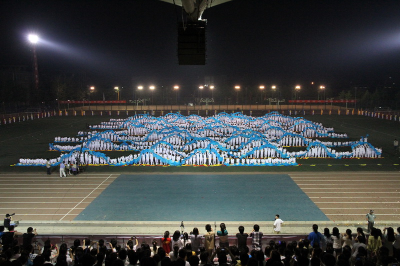 学校体育文化节开幕式进行最后一次大型彩排