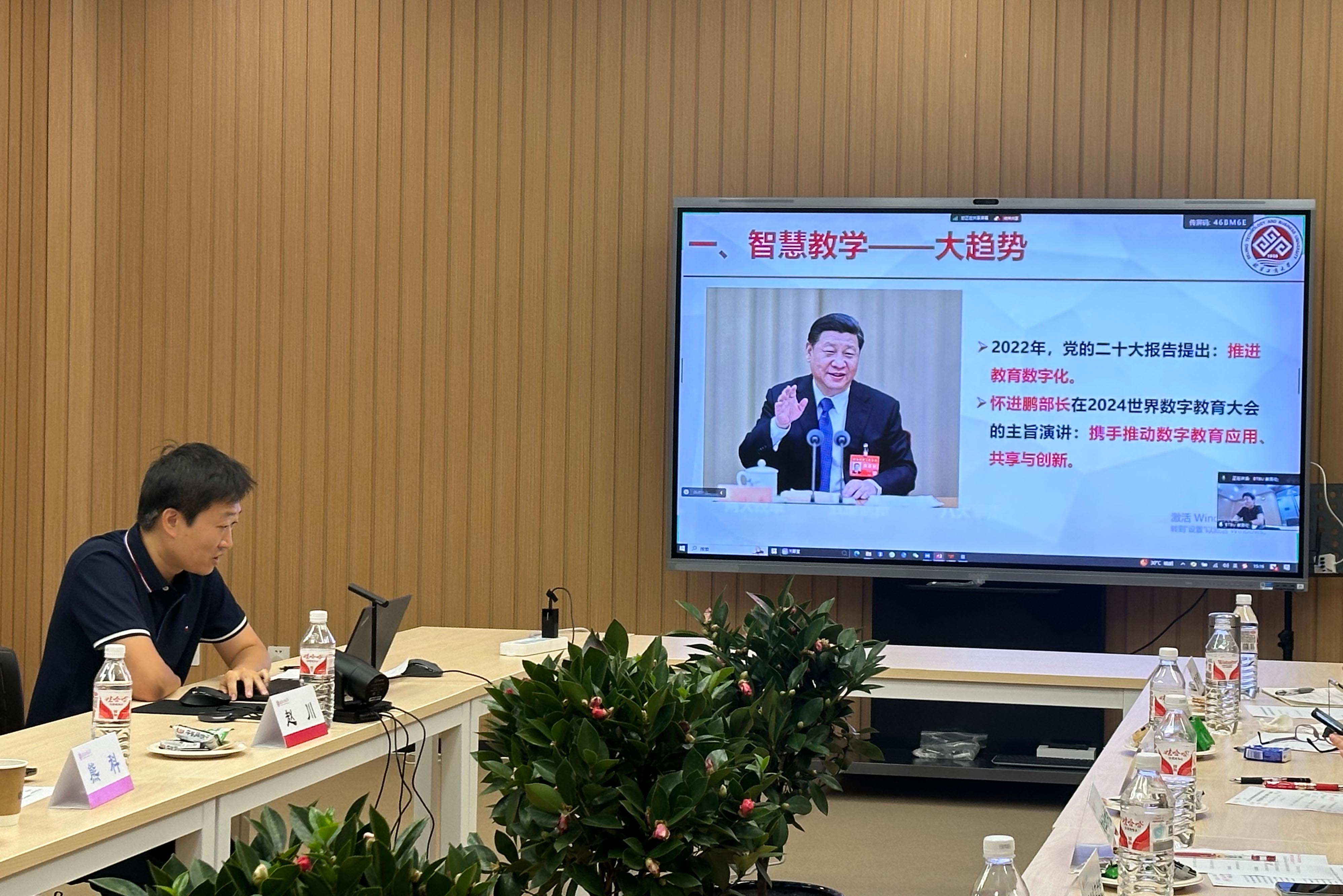 为促进我校骨干教师的快速成长,探索数字技术与学科专业、课程教学、学生学习、教学管理的融合,进一步打造高素质的教师队伍,9月18日下午,教务处在良乡主校区开展了数字技术赋能本科教学沙龙活动。这也是本年度第四期教师教育教学能力提升培训计划系列活动。沙龙活动邀请了商学院副院长赵川、教务处信息化建设科科长王博做专题发言,各教学单位骨干教师代表、教务处相关工作人员40余人参加本次沙龙并交流。沙龙同步通过腾讯会议线上直播。沙龙由教务处副处长熊科主持。