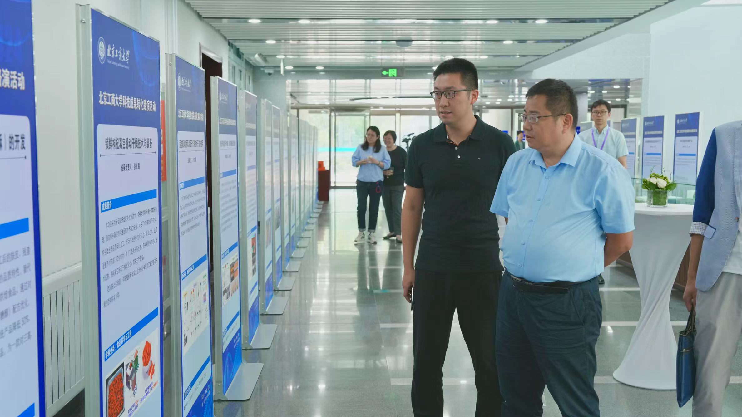 在路演活动开始前,北京市委教育工作委员会委员兼北京市教委副主任张耀天、市国资委副主任赵加凡在黄先开书记的陪同下,现场参观了本次路演的60项成果,全面而细致地了解了这些成果背后的创新理念、技术突破及应用前景,展现了对科技创新的高度重视与深切关怀。