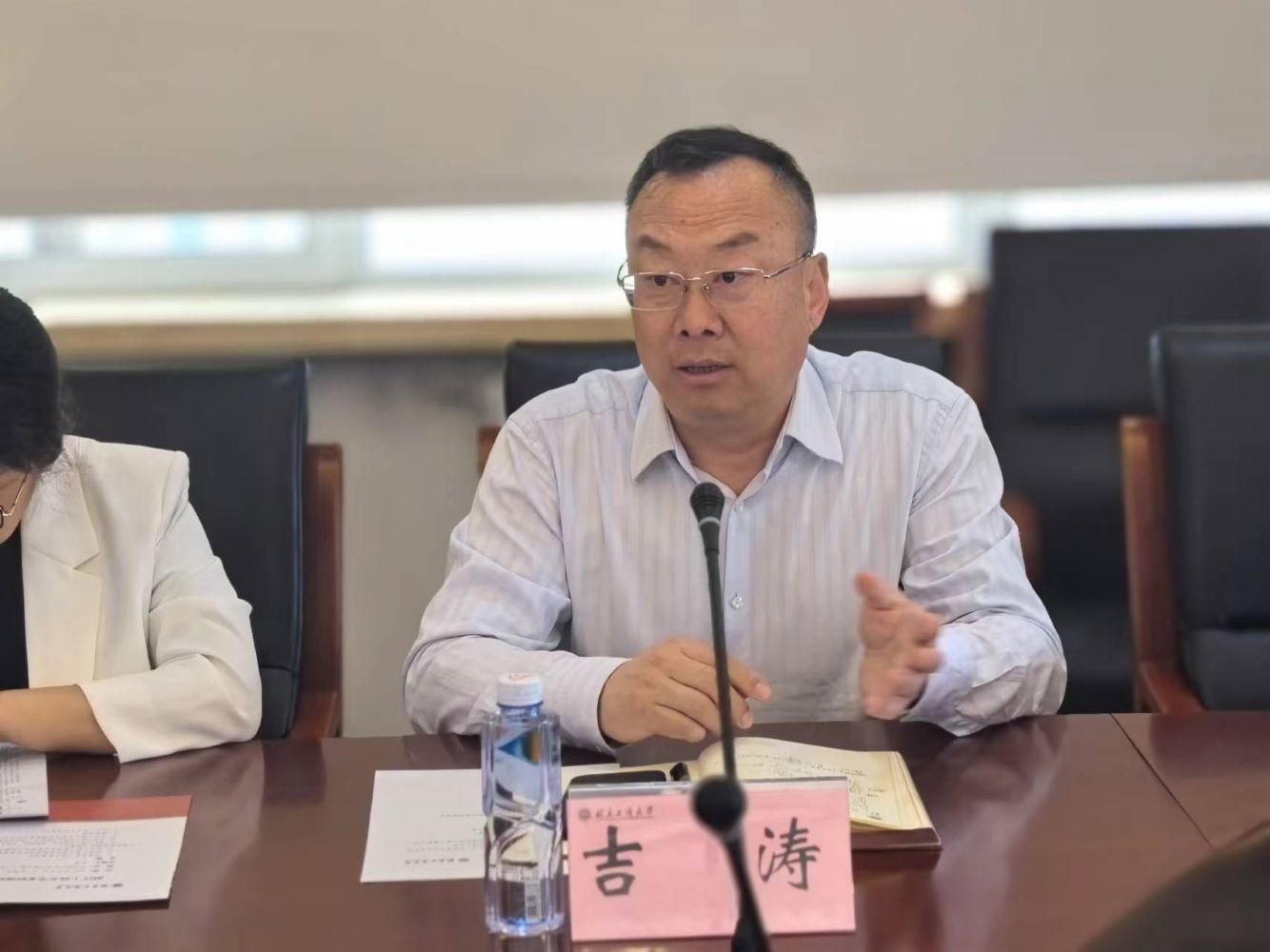吉涛介绍了学校的整体情况以及工商融合的发展理念,强调了学科建设是学校发展的龙头,重点介绍了学校近期的发展目标。