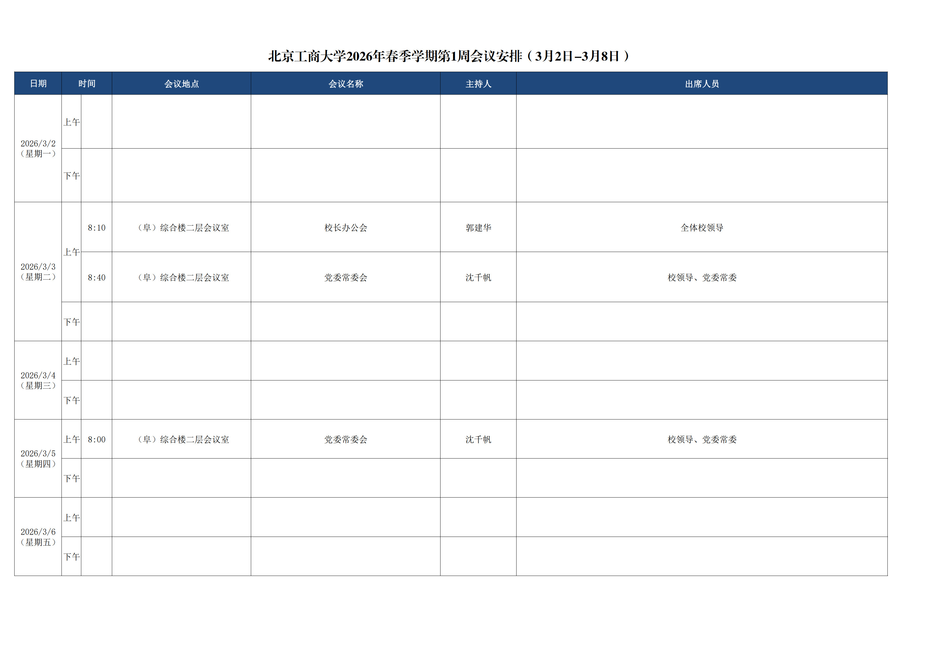 第1周会议安排