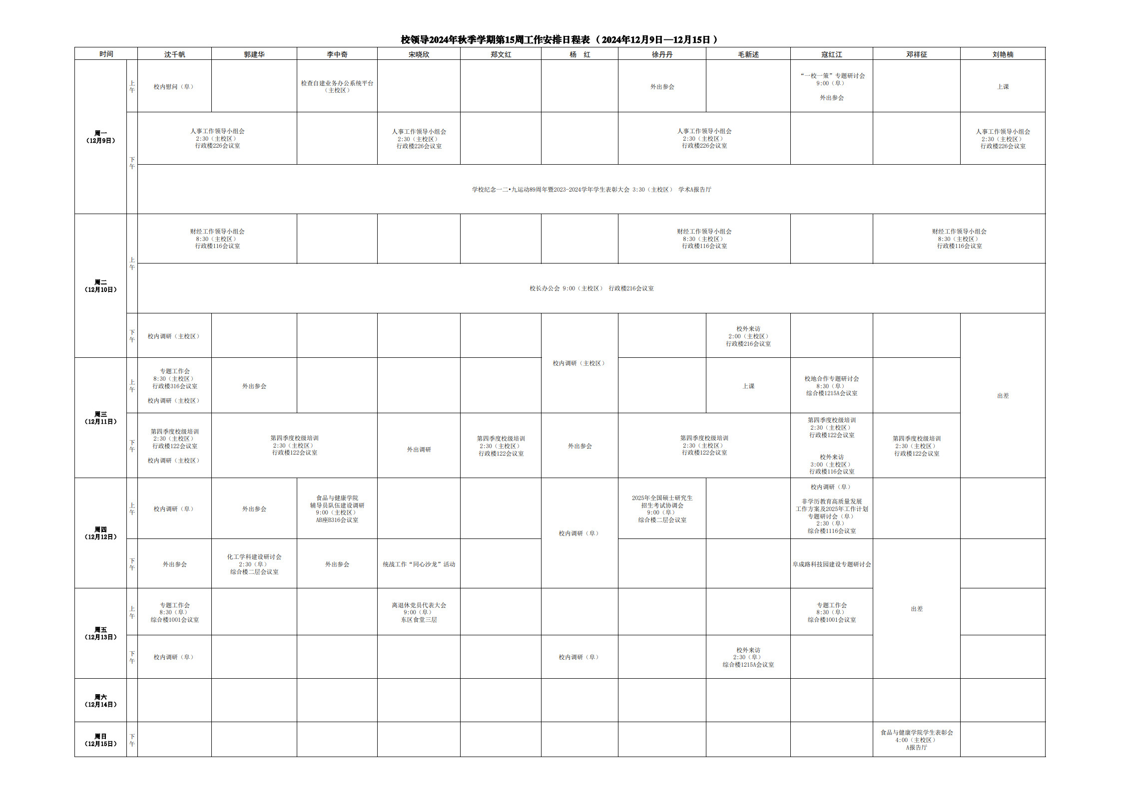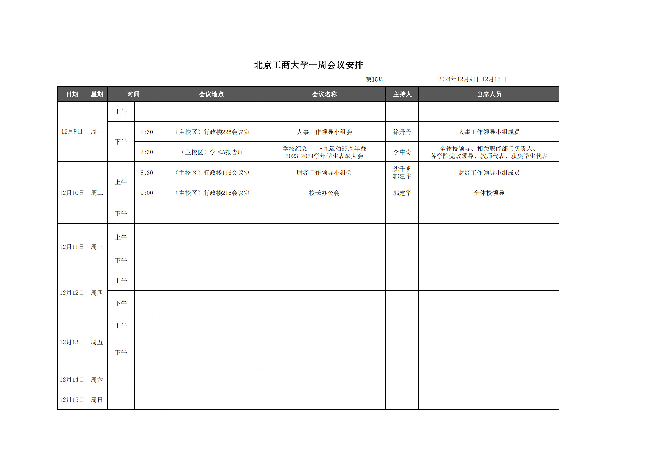 第15周会议安排