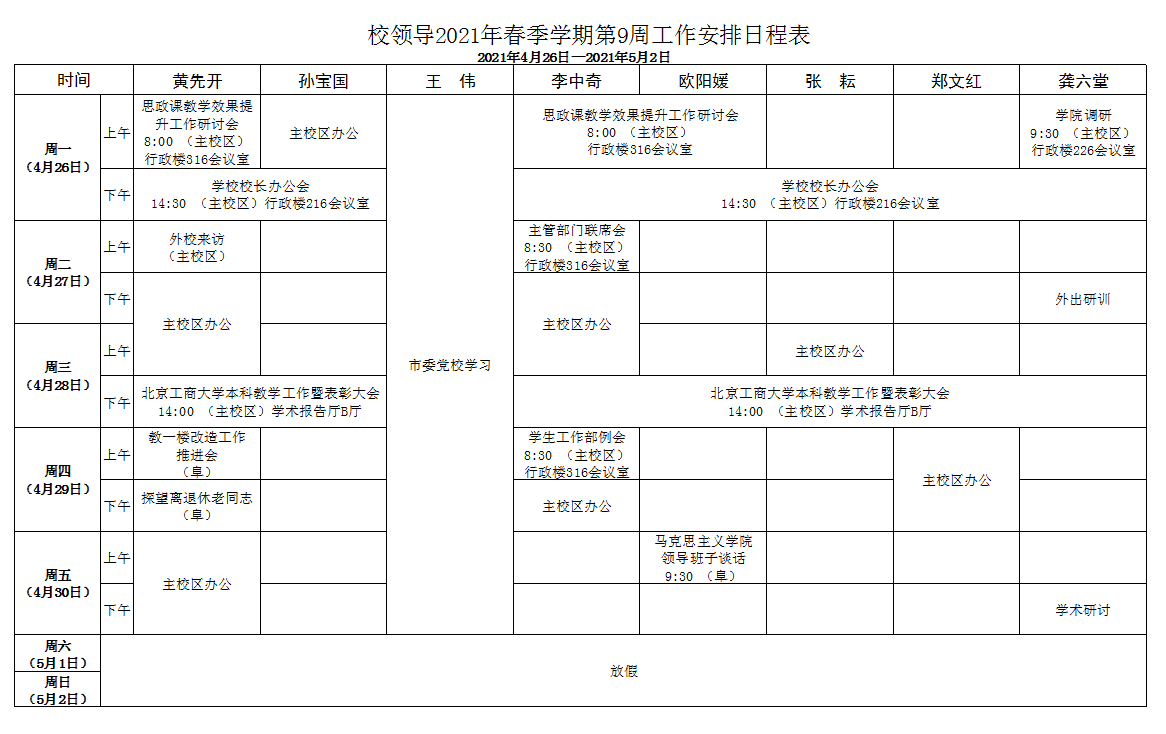 第9周会议安排