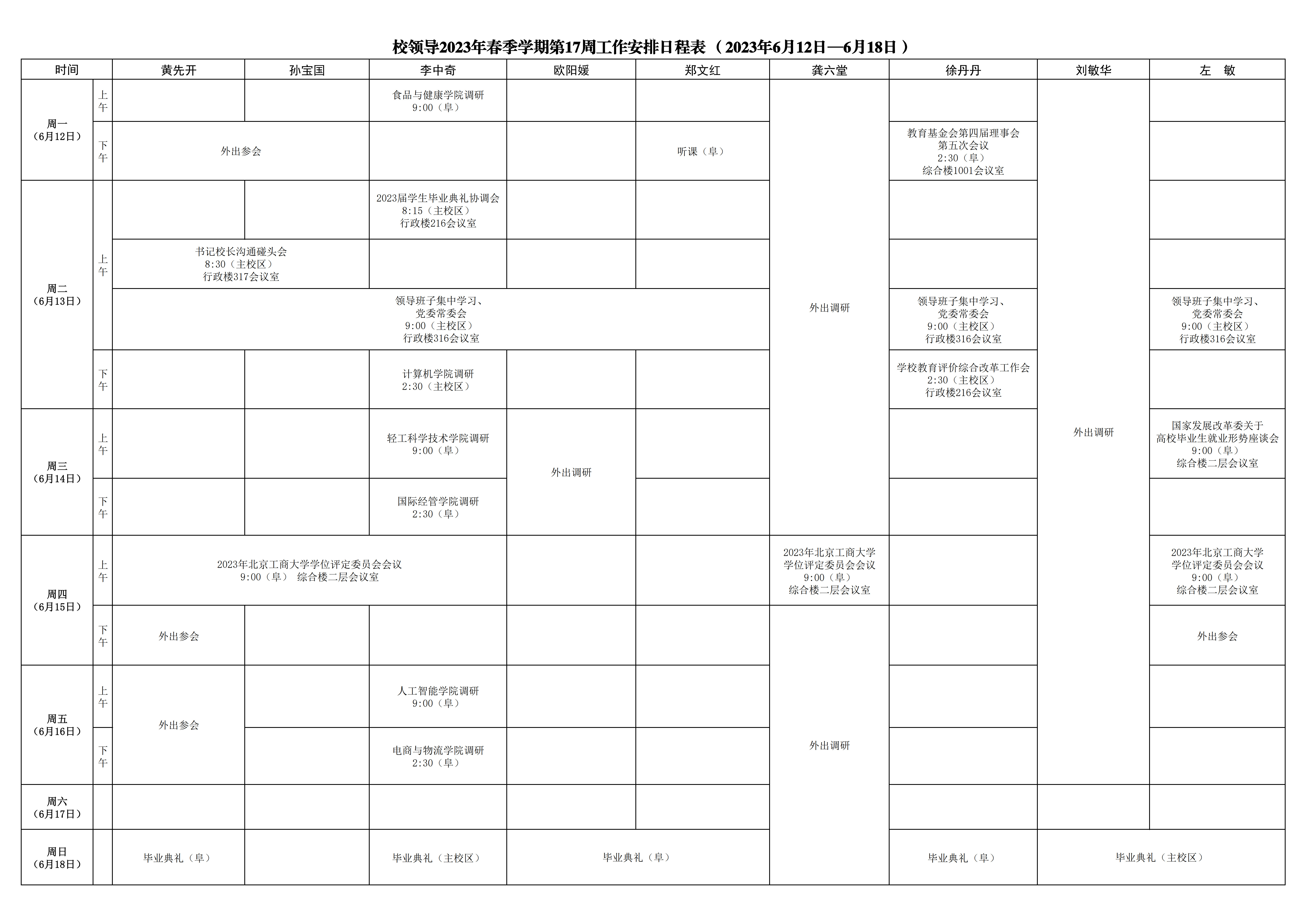 第17周会议安排