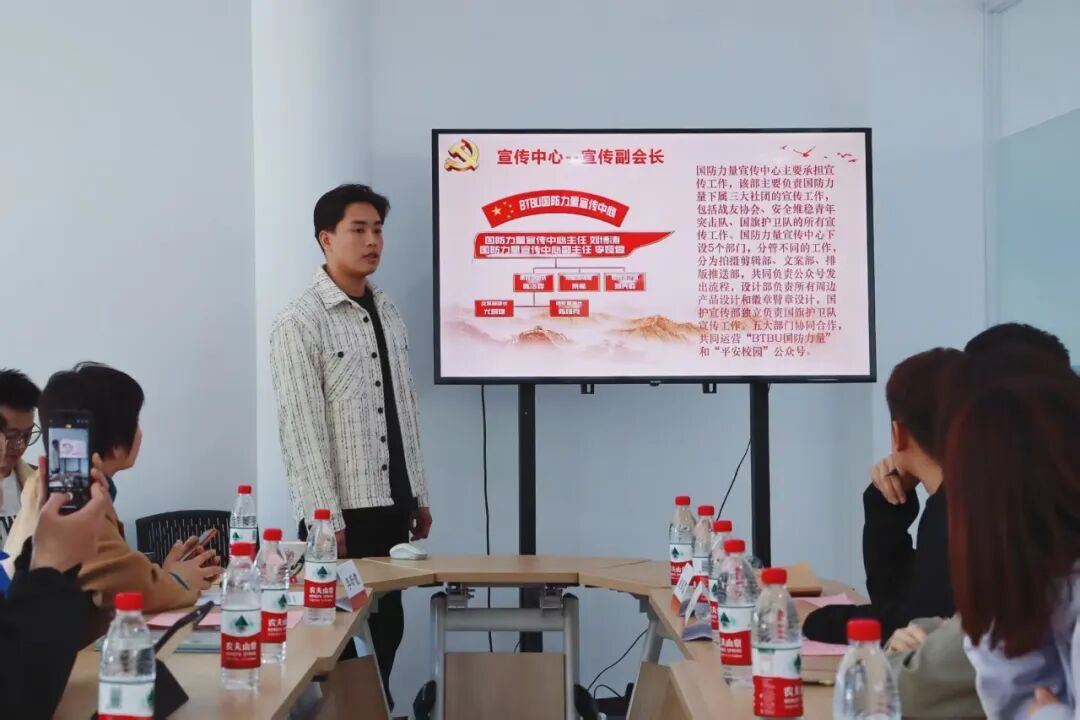 与此同时,他在社团中也展现出卓越的领导力。2023年9月,他出任战友协会副会长、安全维稳青年突击队宣传中心主任,将自己的设计技能淋漓尽致地服务于集体。他不仅负责征兵海报、公众号运营、反诈宣传等任务,更注重团队培养。他说:“负责人不可能承担所有的工作,你要对自己负责,也要对部员负责。”凭借部队训练经验,他带领设艺学院方阵训练取得优异成绩。这些经历不仅锻炼了他的组织协调能力,让他斩获“荣耀奖学金”,更让他如老师所言“载誉归来,于学业勇攀高峰”,完成了从执行者到组织者、从设计师到引领者的蜕变。