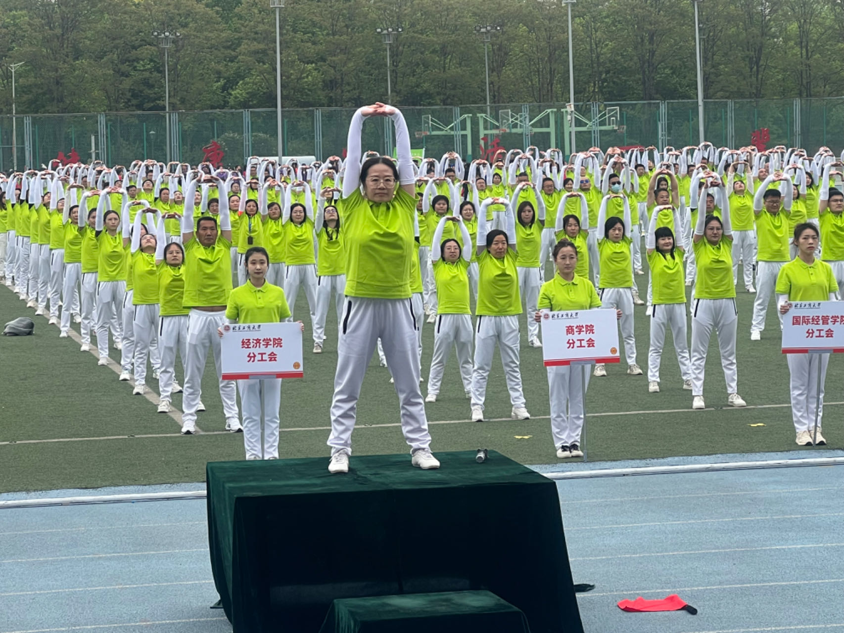 李红老师还承担学校国庆60周年和70周年阅兵群众游行队伍的训练工作,训练过程虽然艰苦,但她迎难而上,以身作则,出色完成任务,国庆盛典之时,赋予我们北工商师生的不仅是自豪和骄傲,更给予我们每个人以信念与动力------在新时代继续坚守初心,坚定信心,保持奋斗姿态,向着更美好的未来阔步前进!