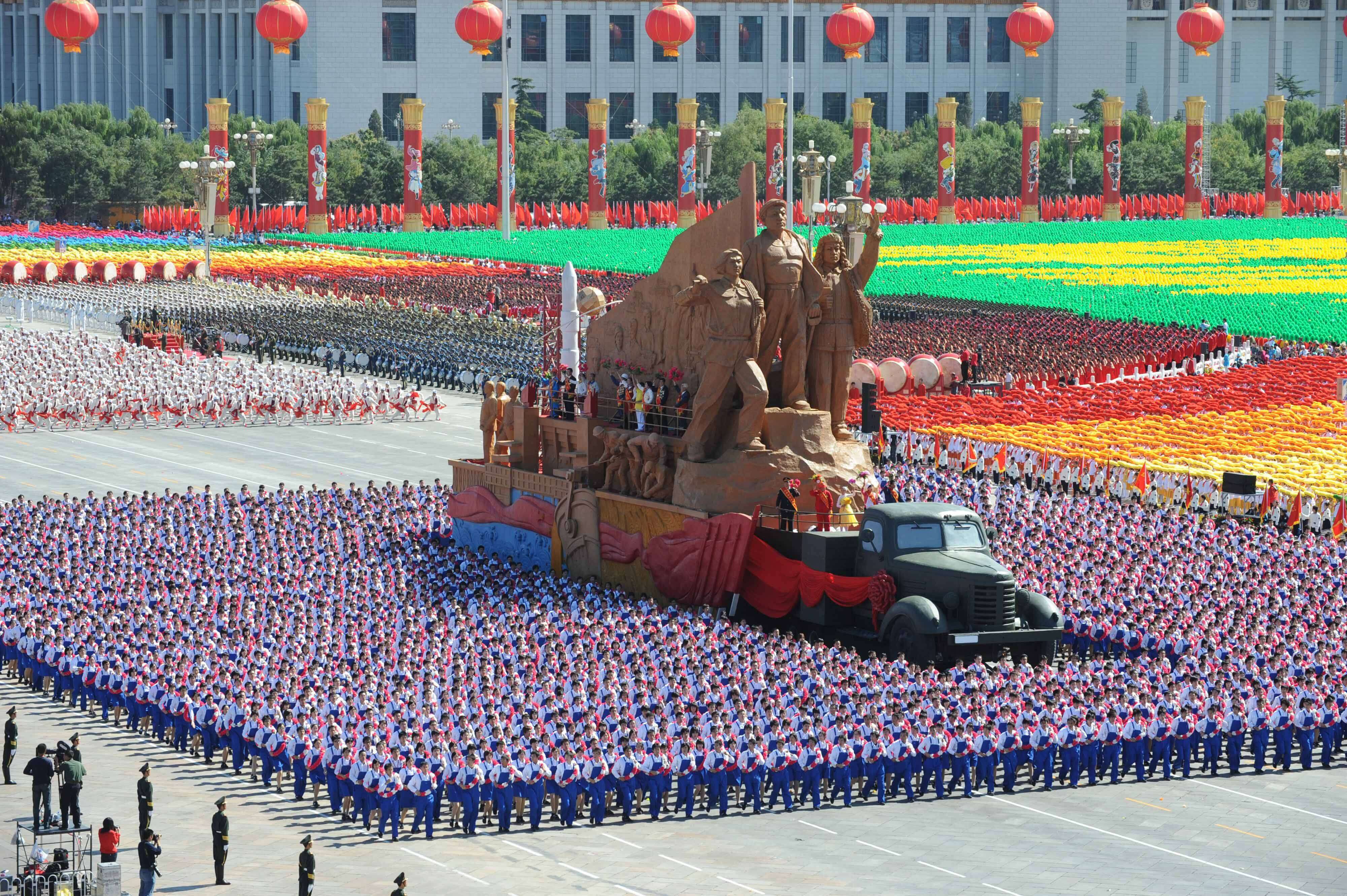 图3:2009年10月1日 我校学生参加国庆60周年群众游行“艰苦创业”方阵 - 2010