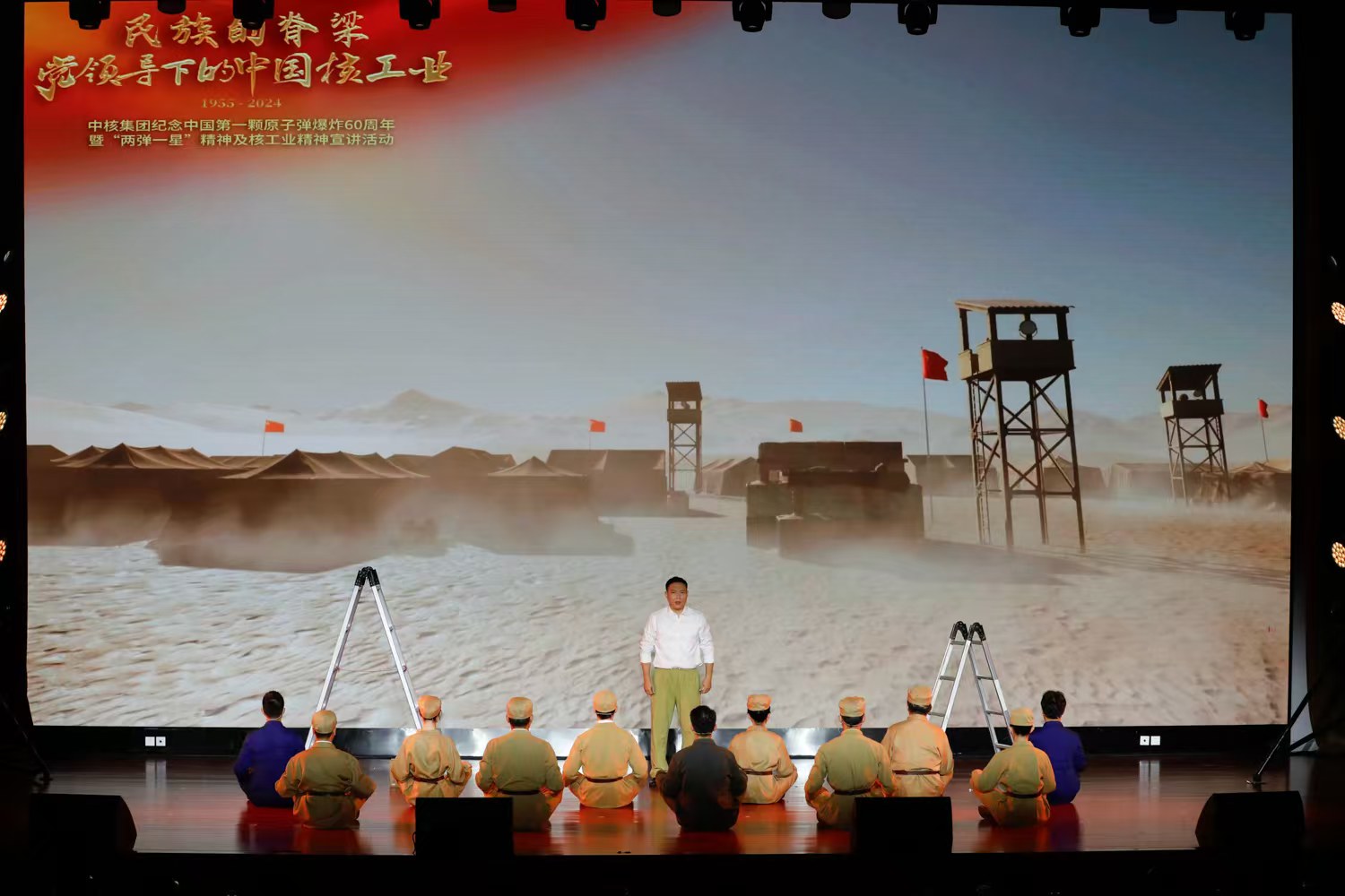 宣讲会通过《东方巨响 核铸基石》《创新发展 奋进凯歌》上下两个篇章,以情景讲述、舞台剧表演、情景合唱、诗朗诵等多种艺术形式全景式展现了在中国共产党的领导下,中国核工业第一次创业时期,为实现“两弹一艇”重大目标,老一辈核科学家及核工业人以身许国、不懈奋斗的动人故事;在习近平新时代中国特色社会主义思想的指引下,在新时代新征程上,为实现核大国向核强国的历史飞跃,新一代核工业人强核报国、创新奉献新的动人篇章。几代核工业人坚持“干惊天动地事,做隐姓埋名人”,用智慧、血汗乃至生命浇筑出的强核之路,讲述了核工业人在“两弹一星”精神、“四个一切”核工业精神和“强核报国、创新奉献”新时代核工业精神激励下的奋斗历程。