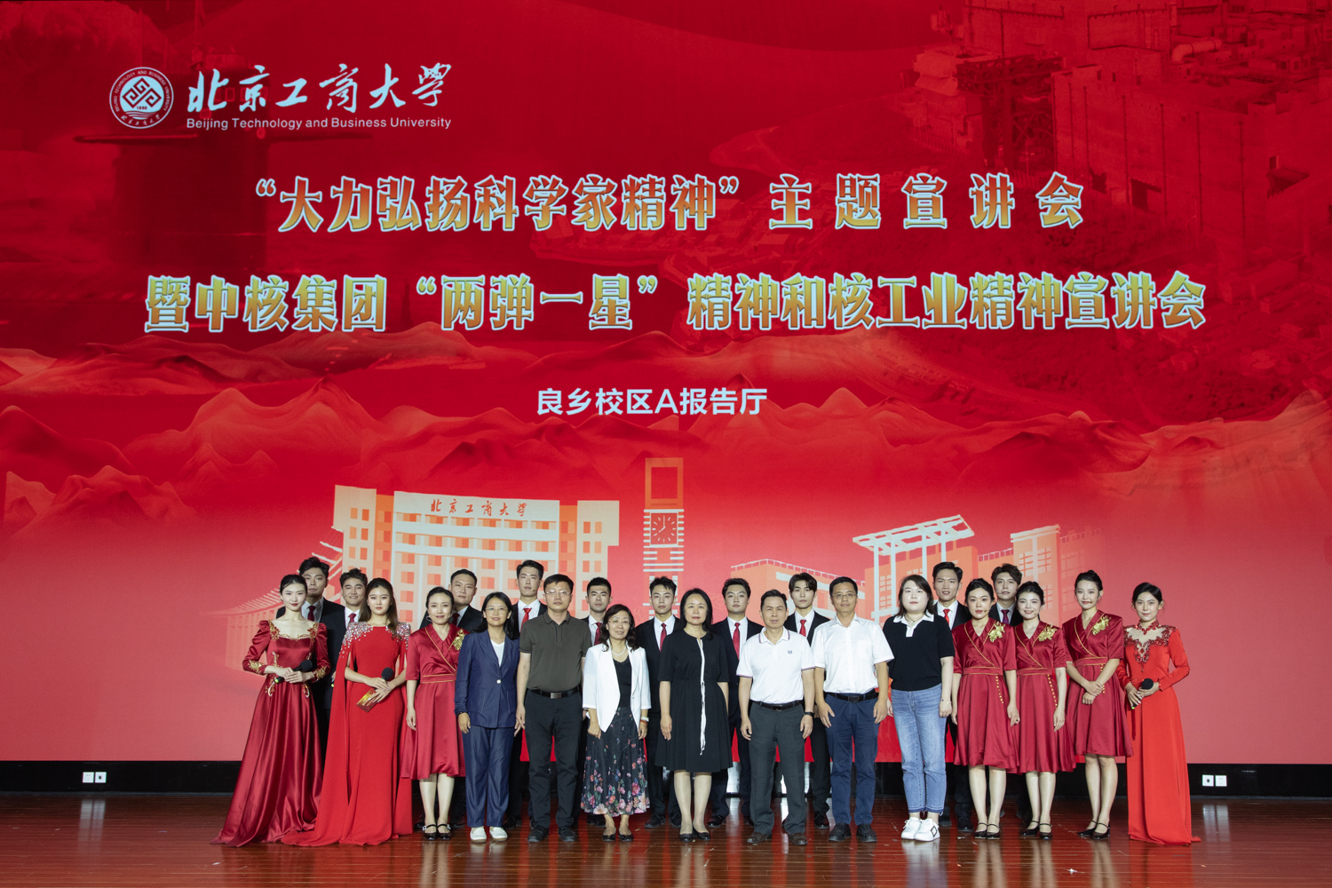 9月11日,恰逢教师节之际,北京工商大学“大力弘扬科学家精神”主题宣讲会暨中核集团“两弹一星”和核工业精神宣讲会在良乡主校区举行。宣讲采取“线上直播+线下观看”方式进行。宣讲会由人事处(党委教师工作部)(教师发展中心)、学生处(党委学生工作部)与中核集团联合举办,中核集团新时代核工业精神宣讲团成员和我校学生共同主持。学校党委书记黄先开出席并致辞,党委副书记宋晓欣、中国核工业科技馆党支部书记李枭雄、中国核工业科技馆馆长彭立新出席,学校党委常委、宣传部部长倪国华,学校办公室主任兼保密办公室主任王晓华,党委教师工作部部长、人事处处长高丽华,学生处处长、党委学生工作部部长郑光及各职能部门、学院领导观看宣讲。各基层党委、党总支800余师生现场观看,近3000人次线上观看。