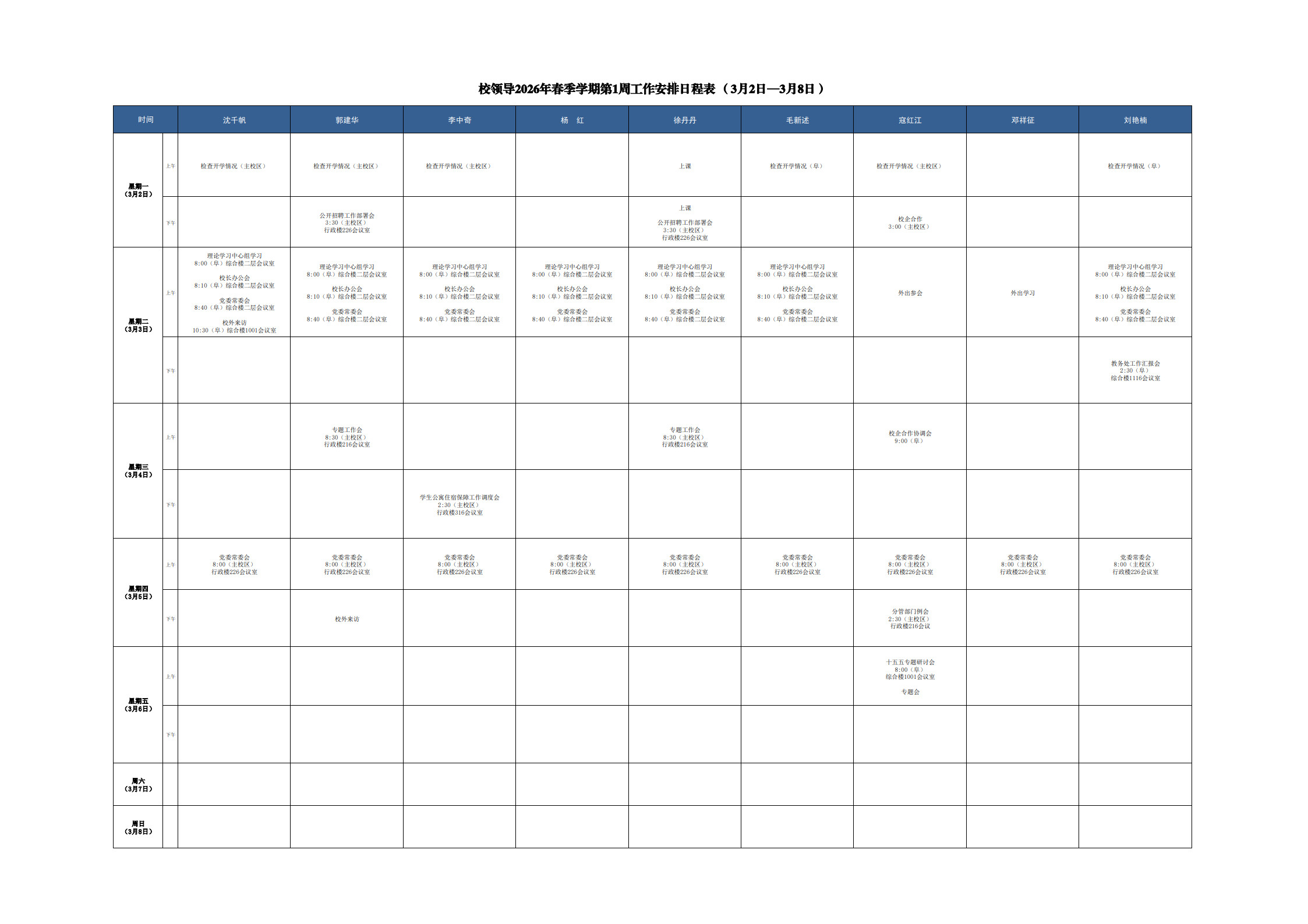 学校值班安排