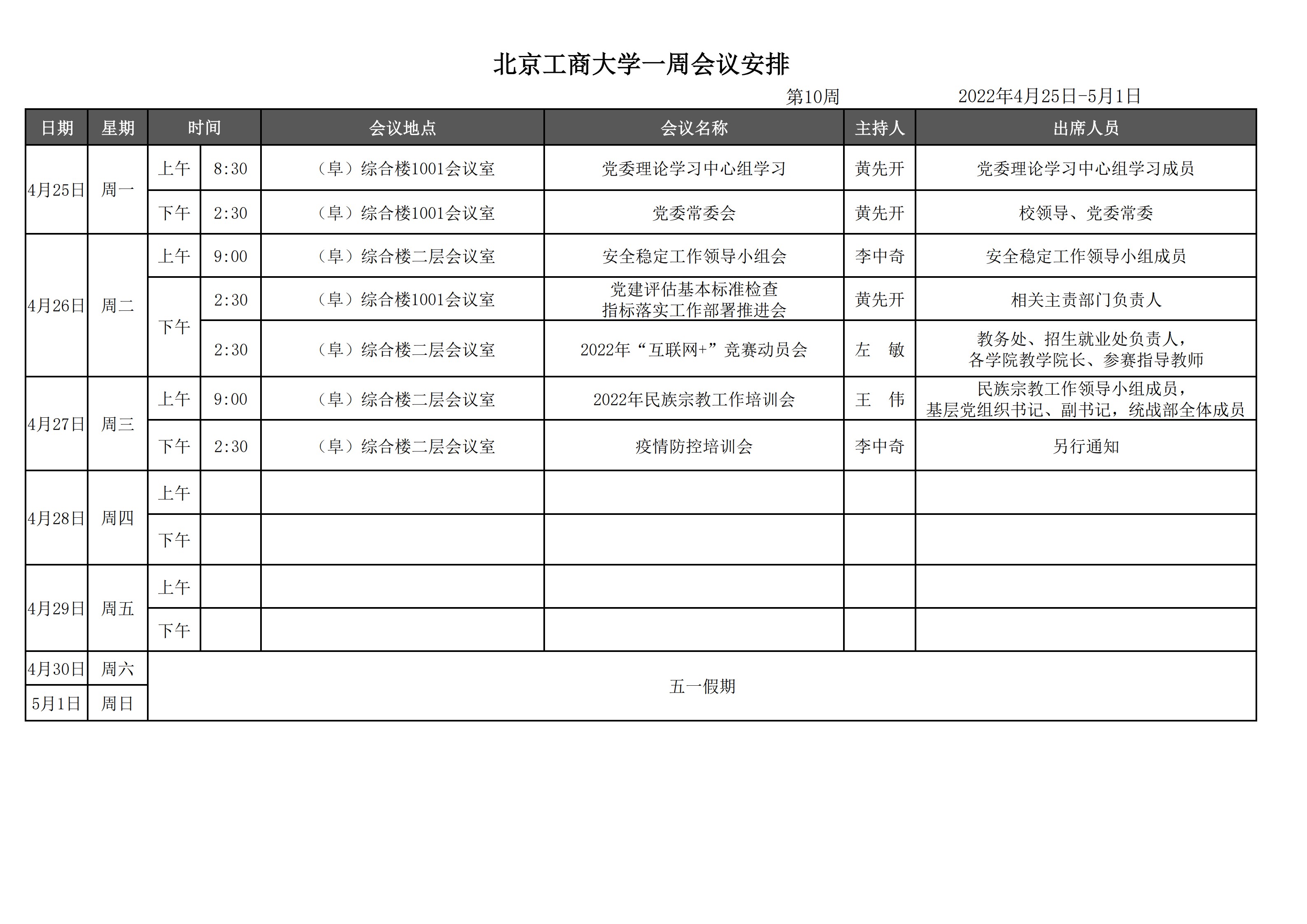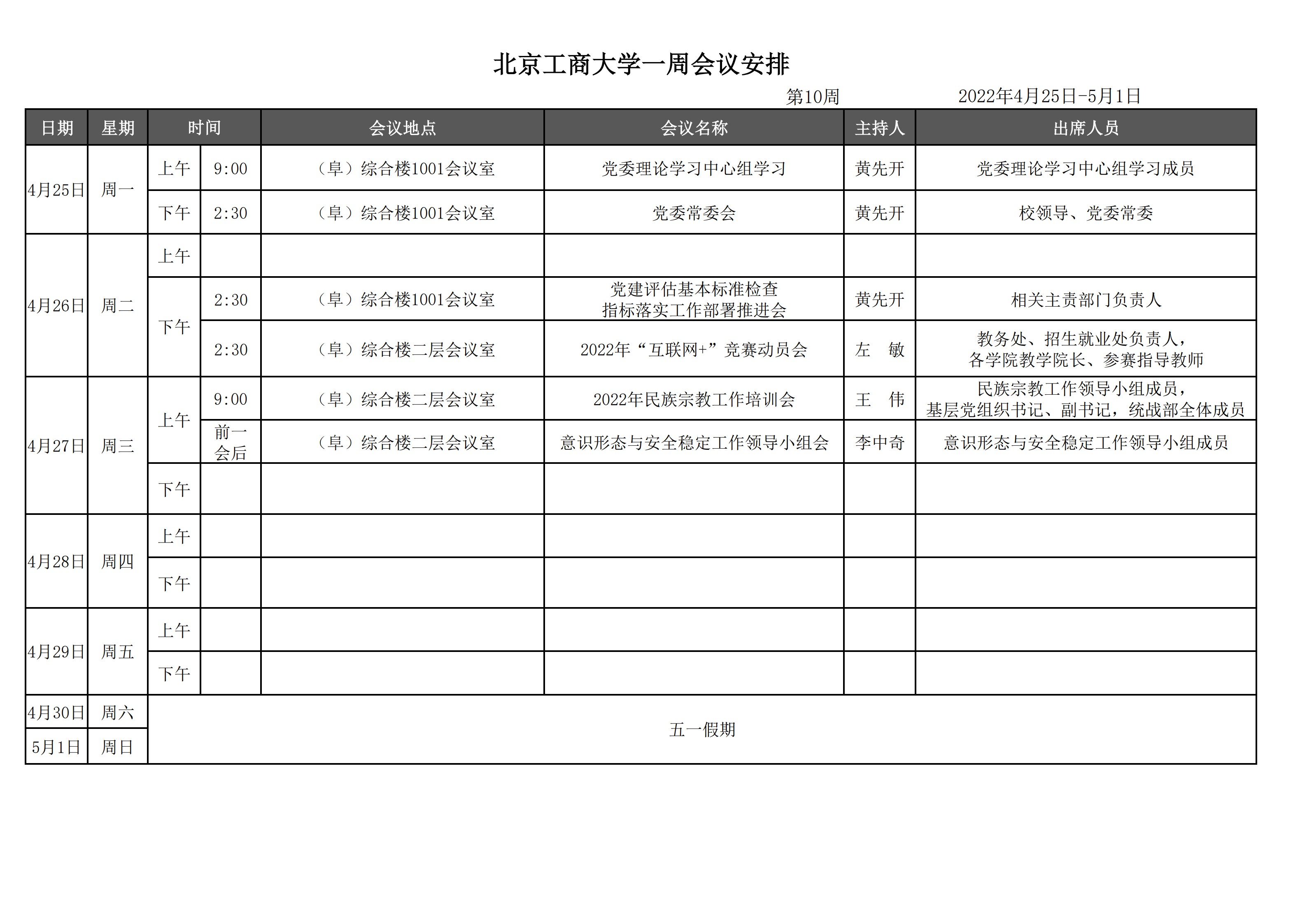第10周会议安排