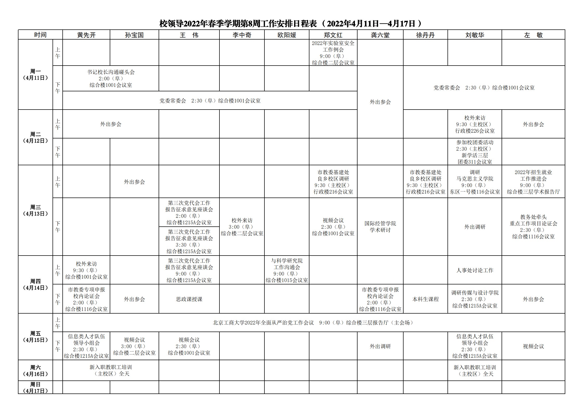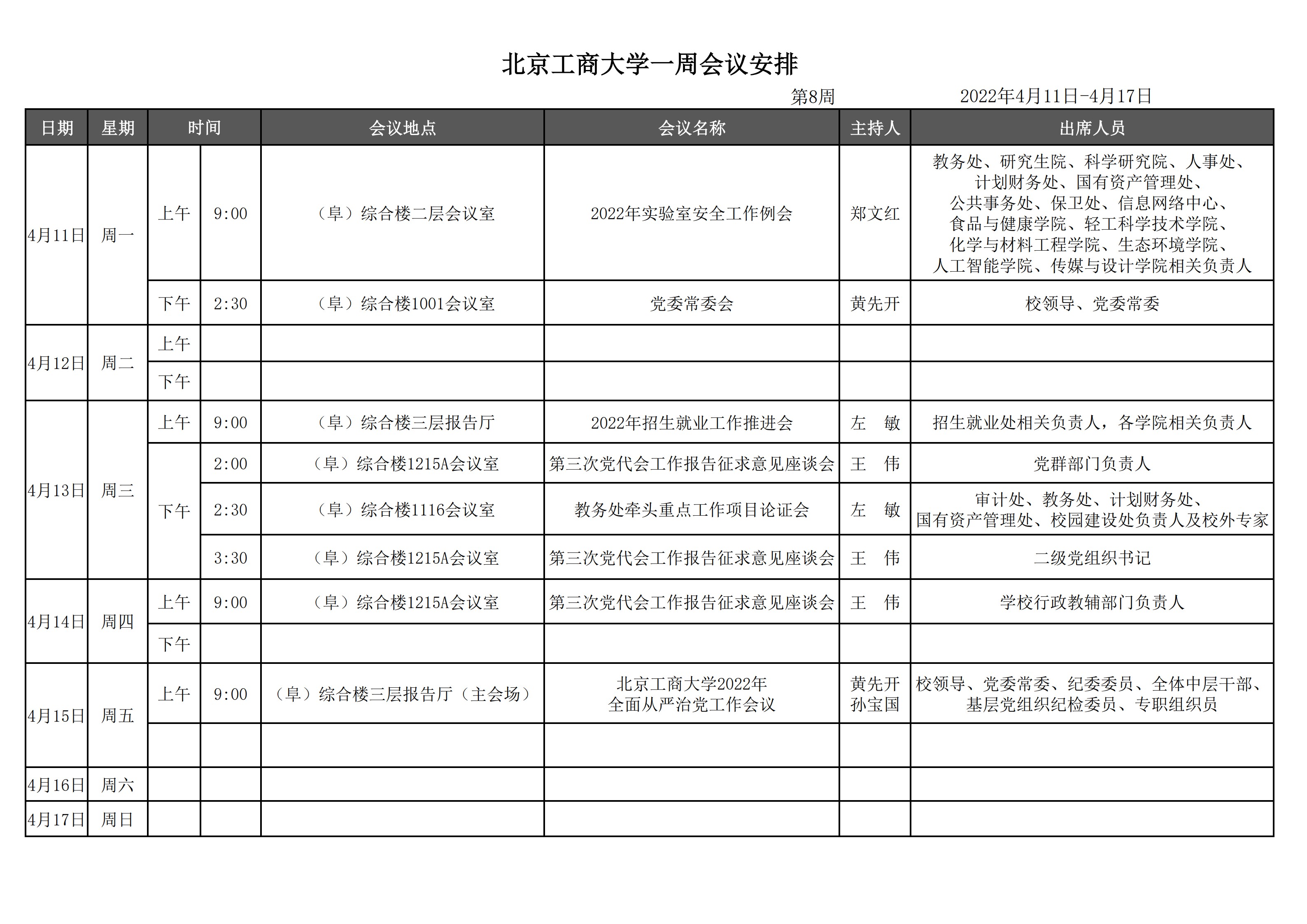 第8周会议安排